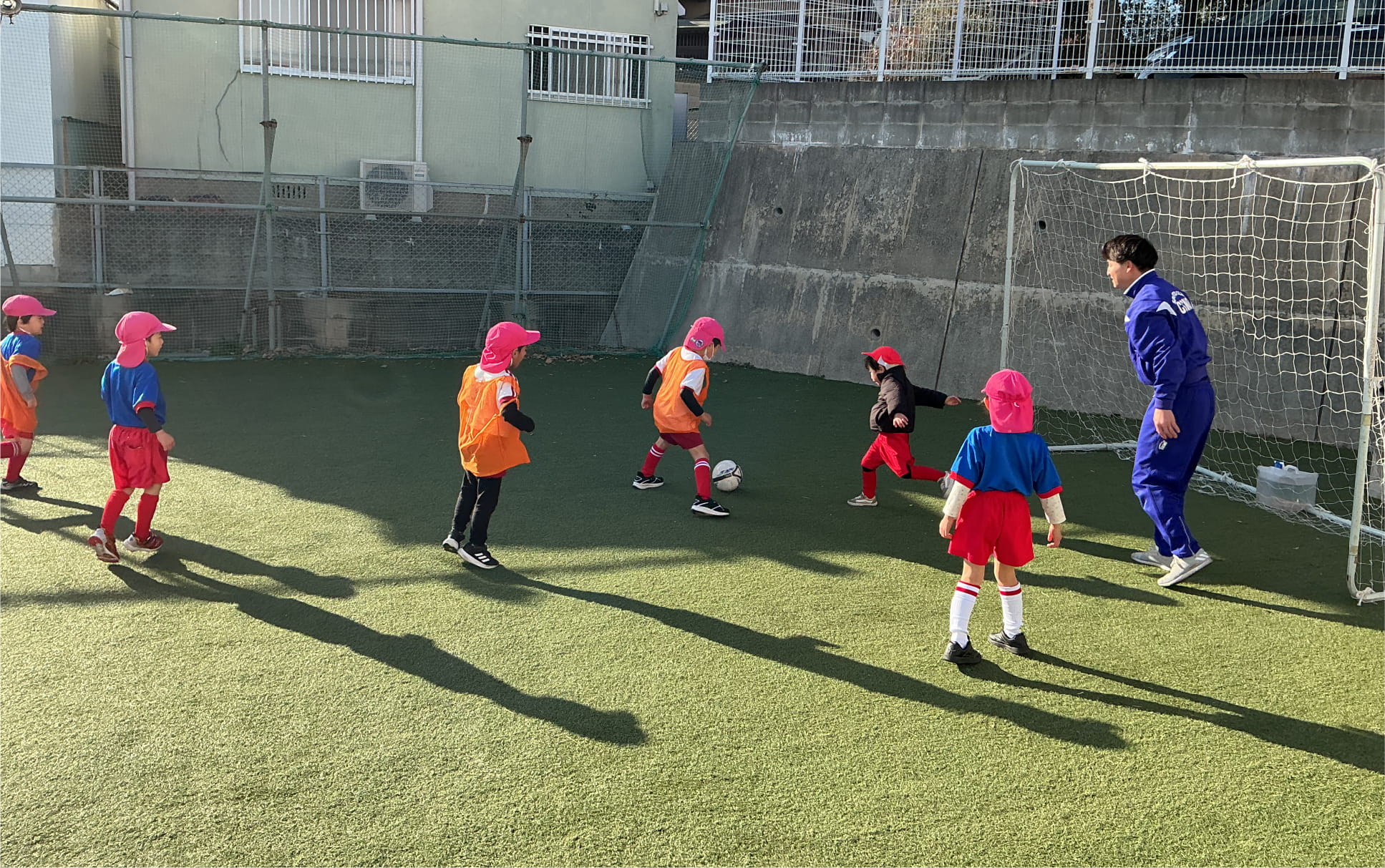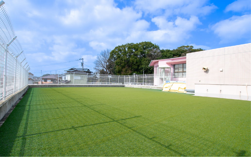 明るく広い保育環境の中でのびのびと過ごせます。園庭、屋上、サッカー場が人工芝になっており、安全に遊ぶことができます。